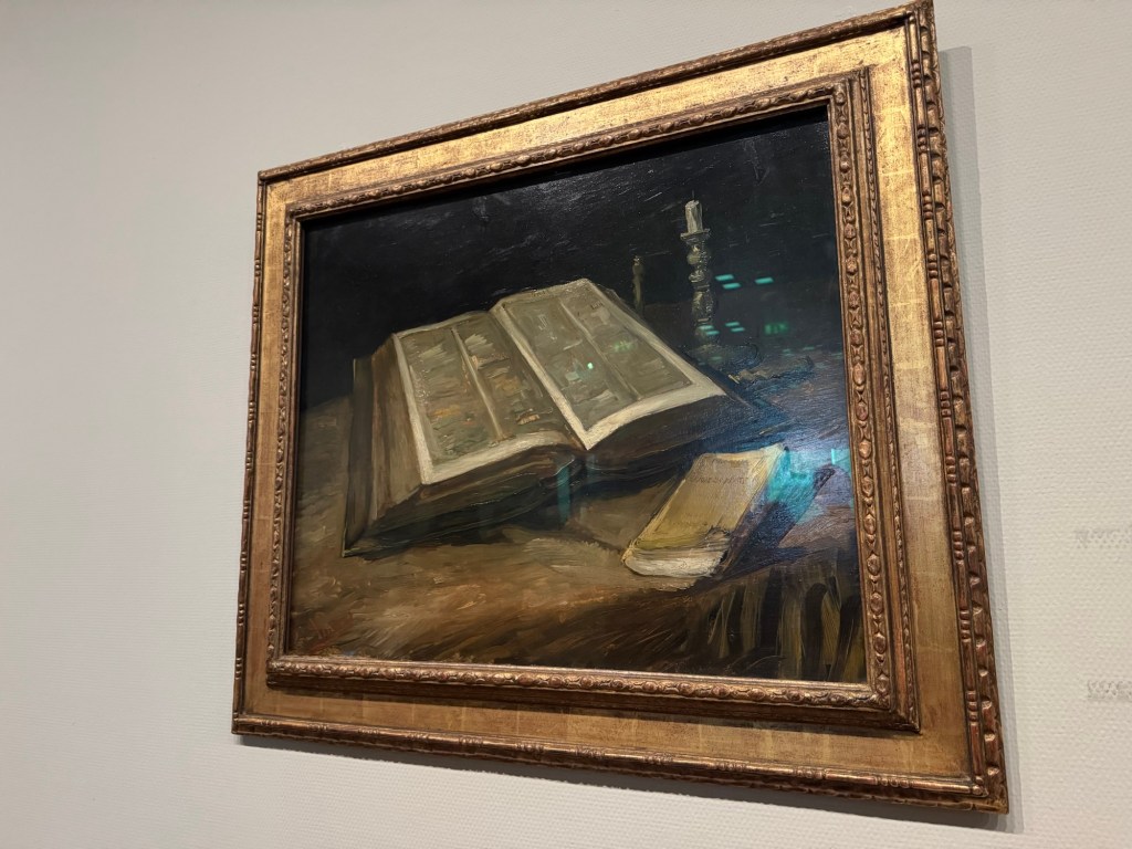 However, painting his father’s Bible significantly brought me to tears. He painted the Bible after his father’s death. It is a pretty big Bible, and just below it is a small book by a French author, Emile Zola, that Vincent found very encouraging.